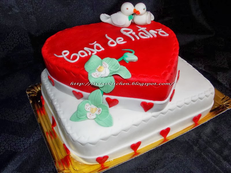 Pt blatul rosu, am batut ouale intregi cu zahar, am adaugat apa, uleiul si faina amestecata cu praf de copt. Am amestecat, am adaugat colorantul rosu. Am turnat compozitia in 2 cani, unse cu ulei. Am bagat aluatul in microunde si l-am copt 7 minute la putere maxima. Dupa ce s-a racit, am scos aluatul din cani...